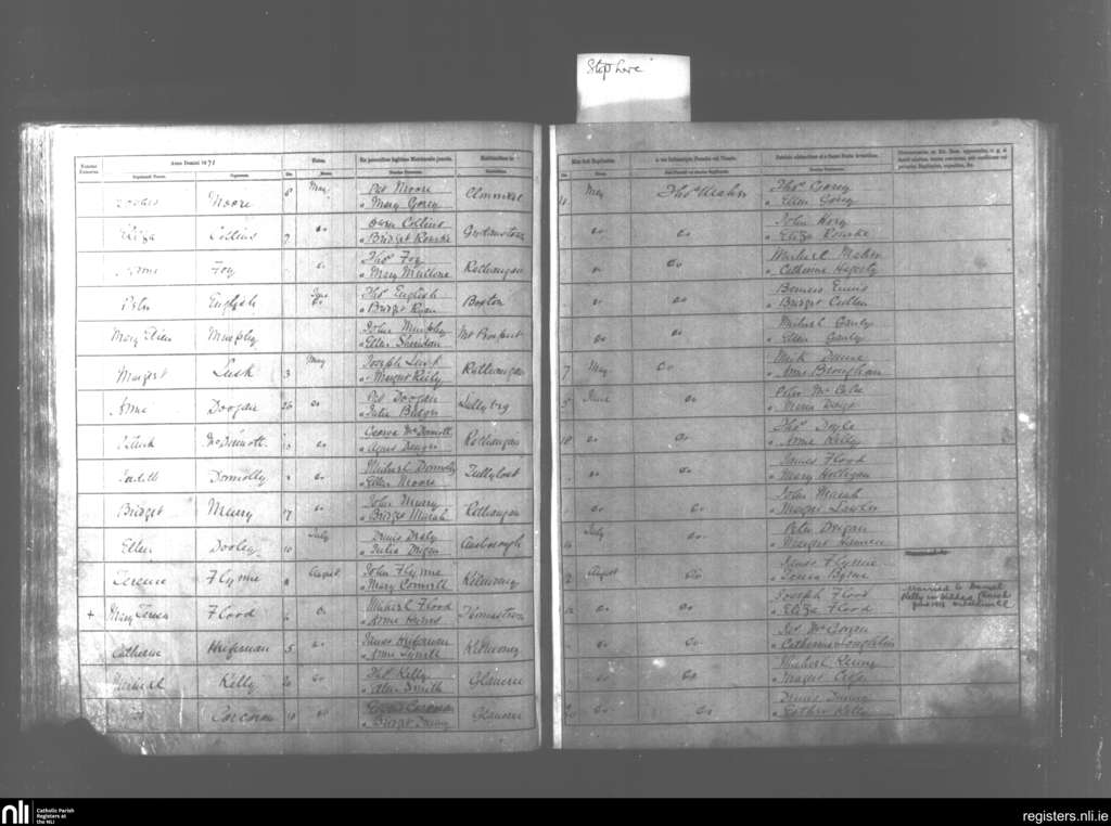 Kildare and Rathangan; County of Kildare; Diocese of Kildare and Leighlin. Baptisms, May 1871 to Aug. 1871