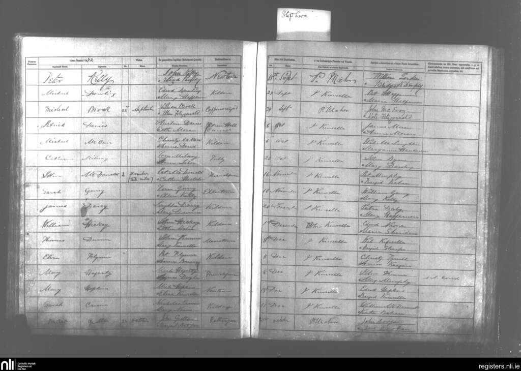 Kildare and Rathangan; County of Kildare; Diocese of Kildare and Leighlin. Baptisms, Sep. 1872 to Dec. 1872
