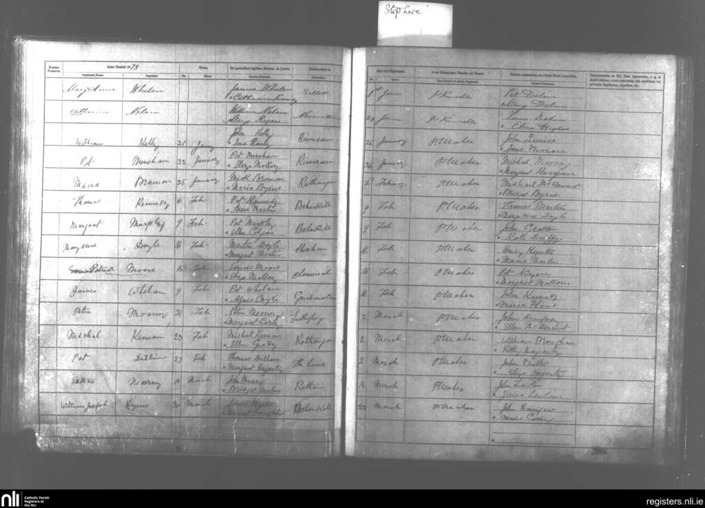 Kildare and Rathangan; County of Kildare; Diocese of Kildare and Leighlin. Baptisms, Jan. 1873 to June 1873