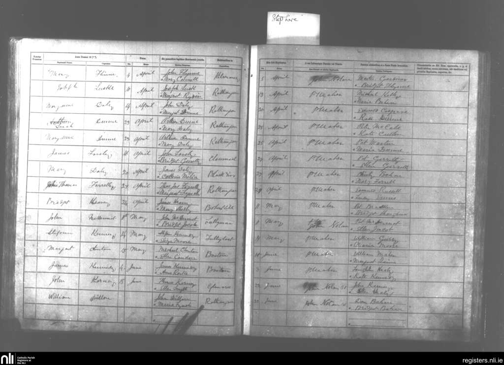 Kildare and Rathangan; County of Kildare; Diocese of Kildare and Leighlin. Baptisms, Apr. 1873 to June 1873