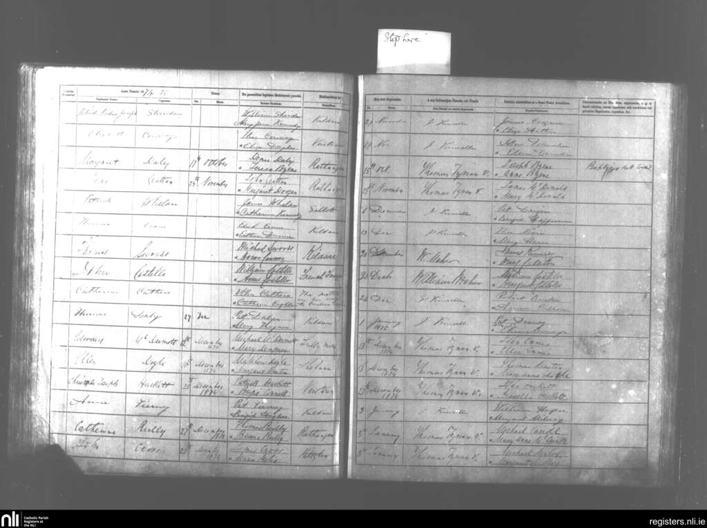 Kildare and Rathangan; County of Kildare; Diocese of Kildare and Leighlin. Baptisms, Oct. 1874 to Jan. 1875
