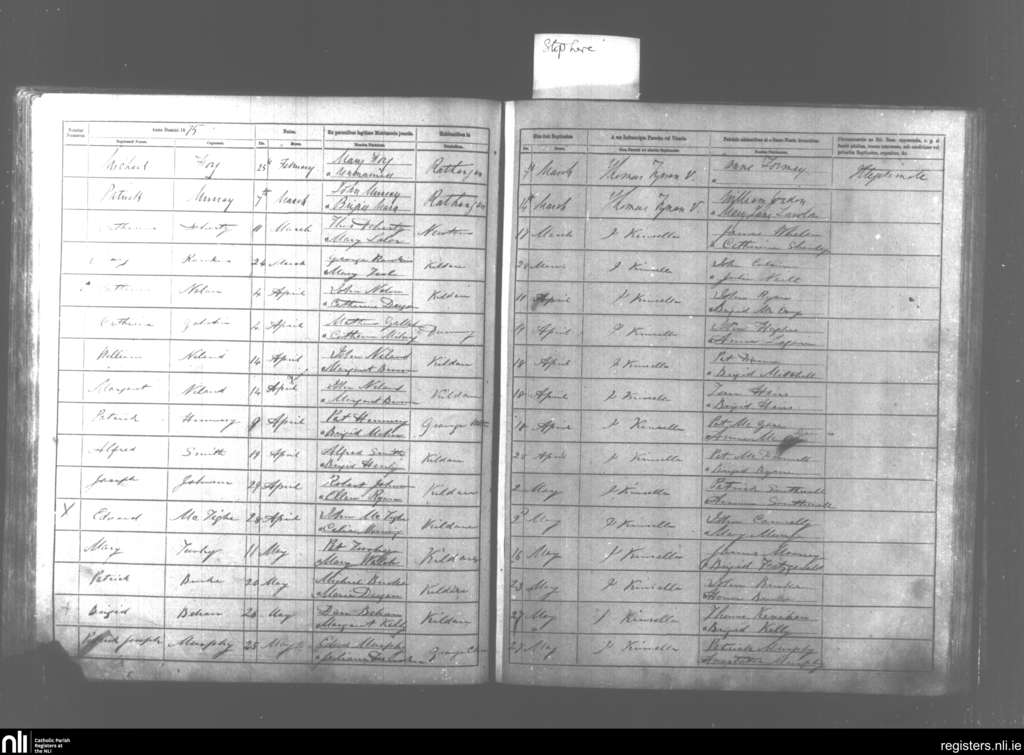 Kildare and Rathangan; County of Kildare; Diocese of Kildare and Leighlin. Baptisms, Mar. 1875 to May 1875