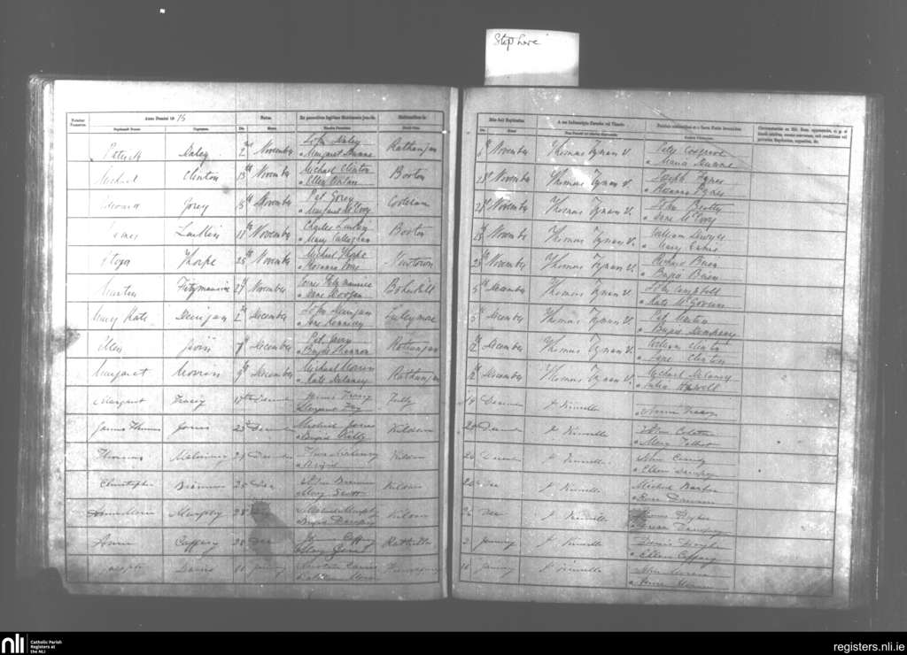 Kildare and Rathangan; County of Kildare; Diocese of Kildare and Leighlin. Baptisms, Nov. 1875 to Jan. 1876
