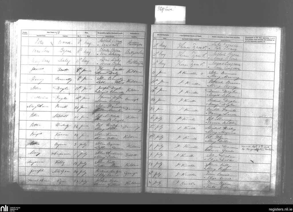 Kildare and Rathangan; County of Kildare; Diocese of Kildare and Leighlin. Baptisms, May 1876 to July 1876