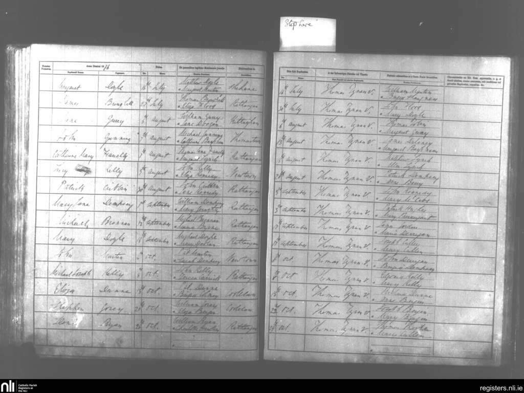 Kildare and Rathangan; County of Kildare; Diocese of Kildare and Leighlin. Baptisms, July 1876 to Oct. 1876