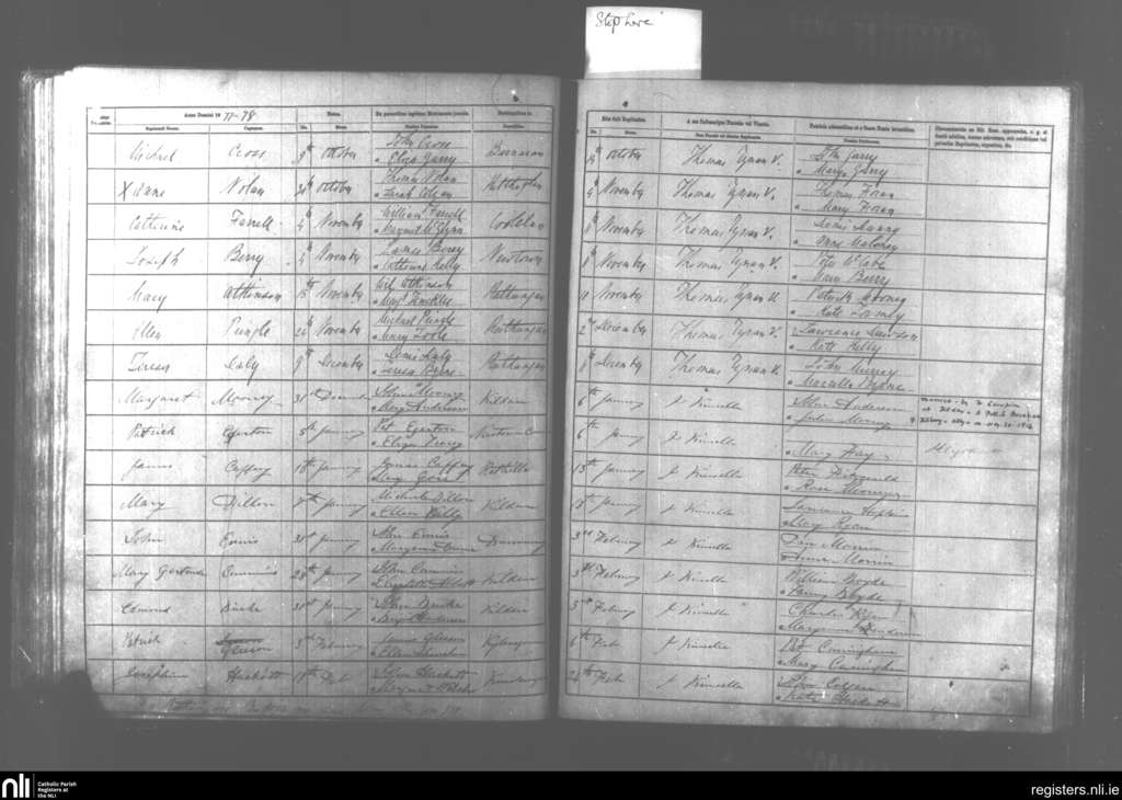 Kildare and Rathangan; County of Kildare; Diocese of Kildare and Leighlin. Baptisms, Oct. 1877 to Feb. 1878