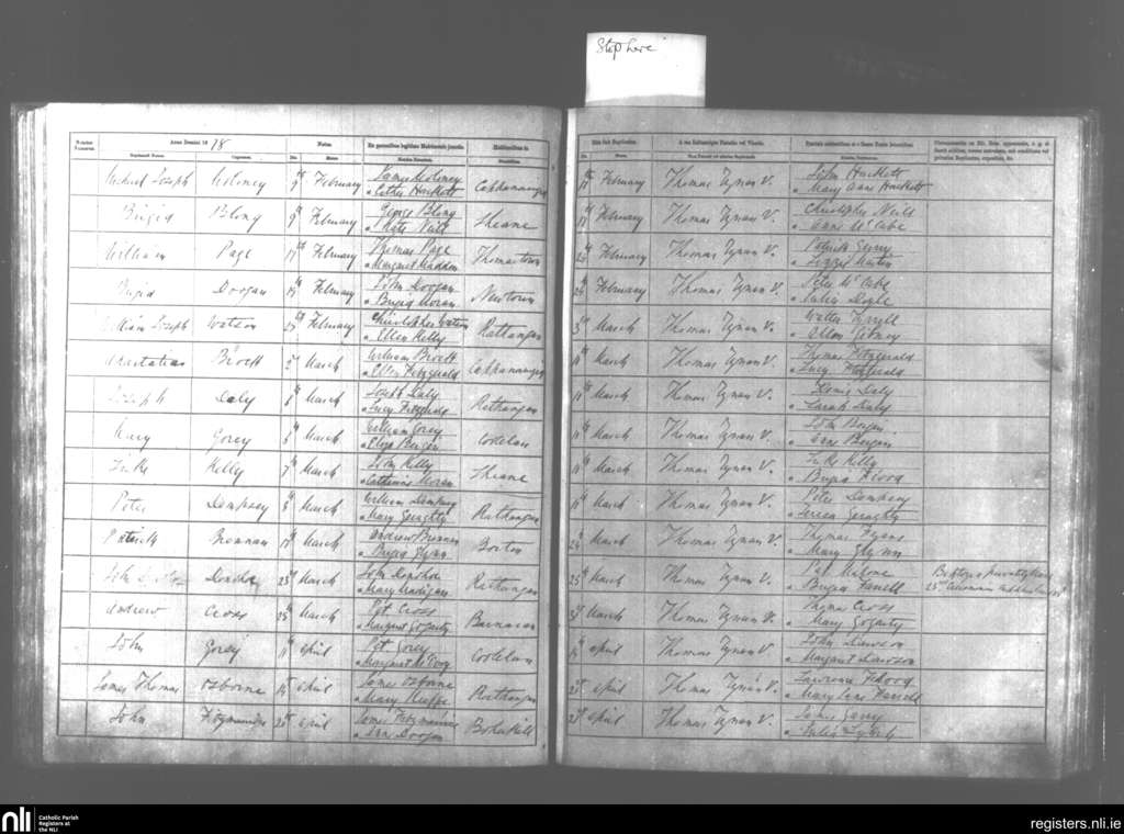 Kildare and Rathangan; County of Kildare; Diocese of Kildare and Leighlin. Baptisms, Feb. 1878 to Apr. 1878