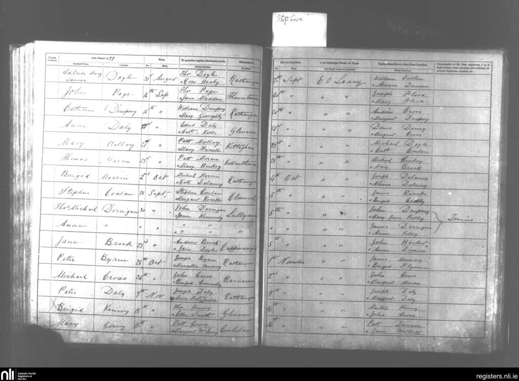 Kildare and Rathangan; County of Kildare; Diocese of Kildare and Leighlin. Baptisms, Sep. 1879 to Nov. 1879