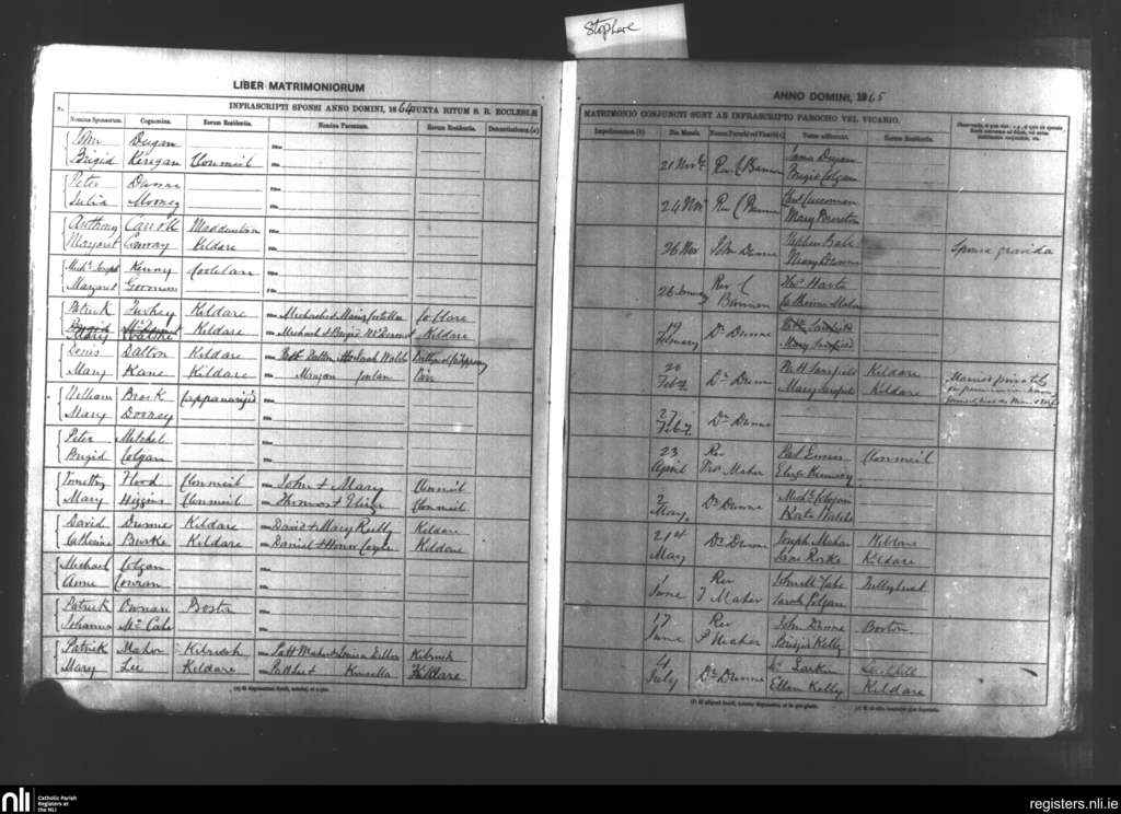 Kildare and Rathangan; County of Kildare; Diocese of Kildare and Leighlin. Marriages, Nov. 1864 to July 1865