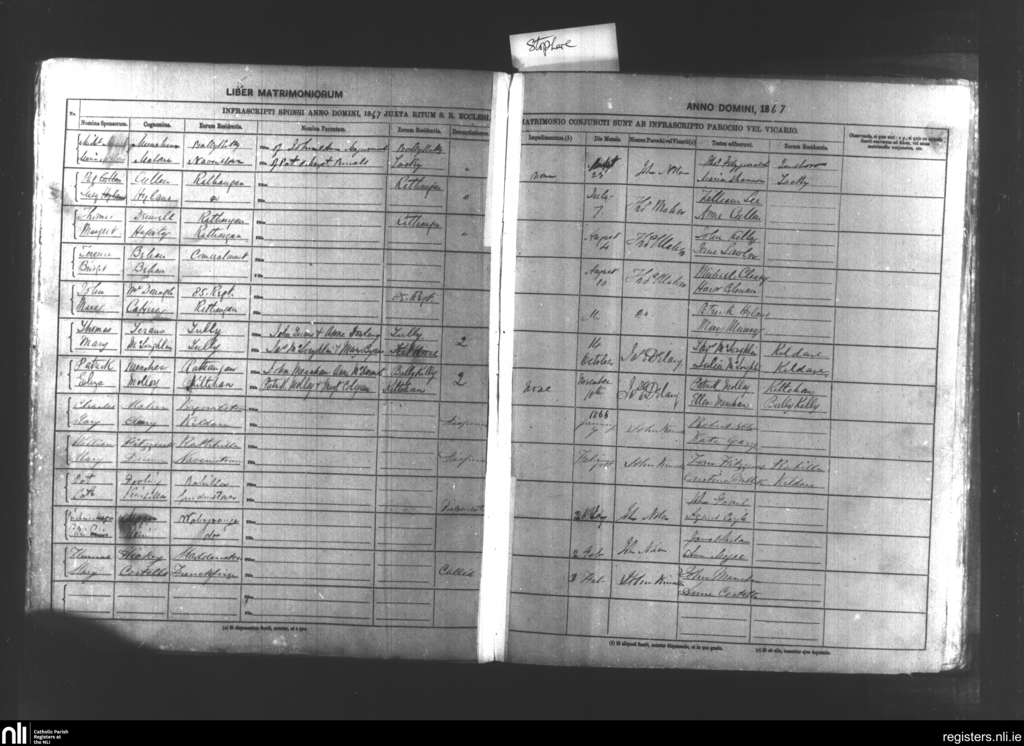 Kildare and Rathangan; County of Kildare; Diocese of Kildare and Leighlin. Marriages, July 1867 to Feb. 1868