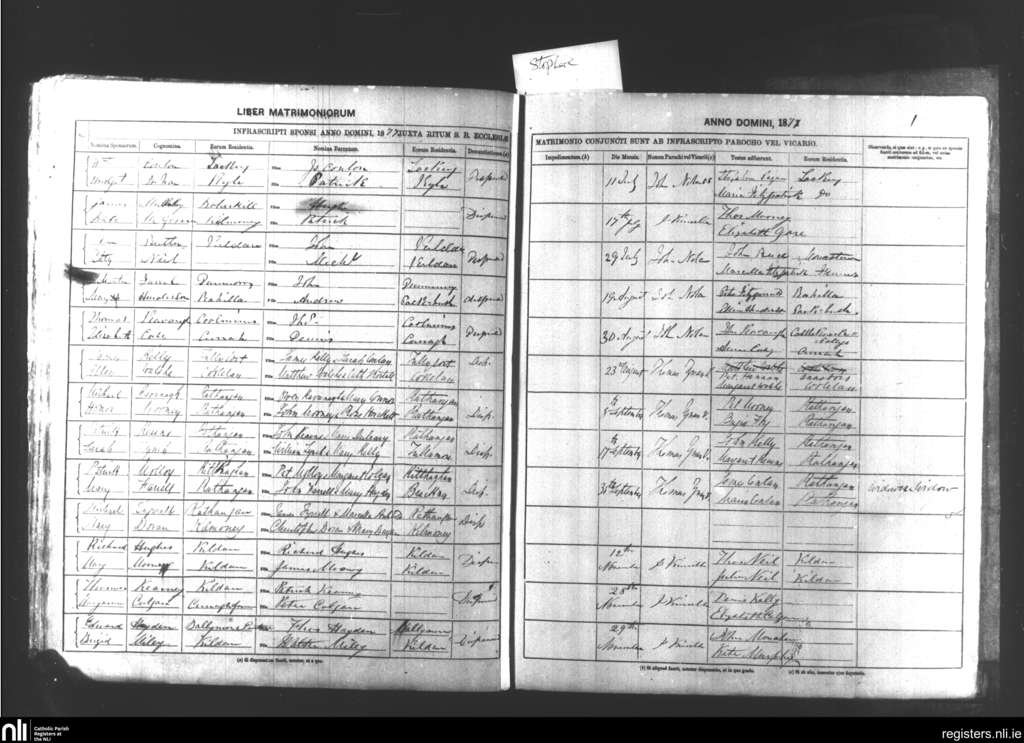 Kildare and Rathangan; County of Kildare; Diocese of Kildare and Leighlin. Marriages, July 1877 to Nov. 1877