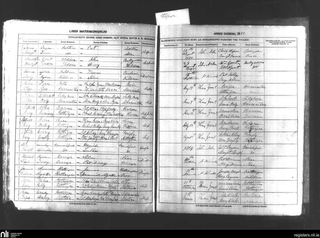Kildare and Rathangan; County of Kildare; Diocese of Kildare and Leighlin. Marriages, May 1878 to Nov. 1878