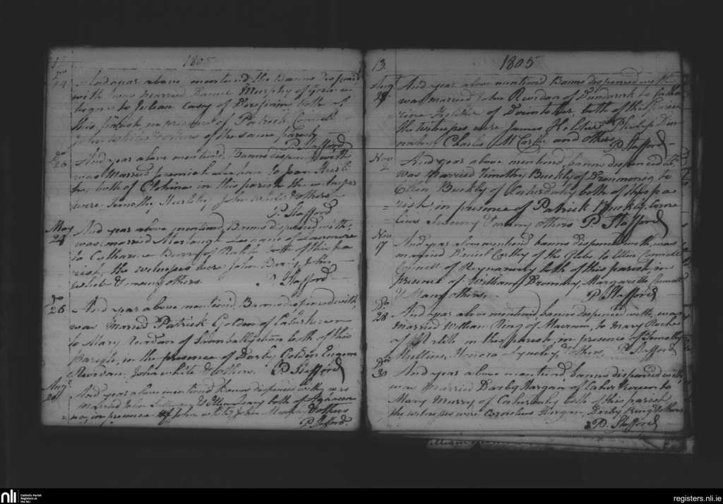 Kilnamartyra; County of Cork; Diocese of Cloyne. Marriages, Feb. 1805 to Nov. 1805