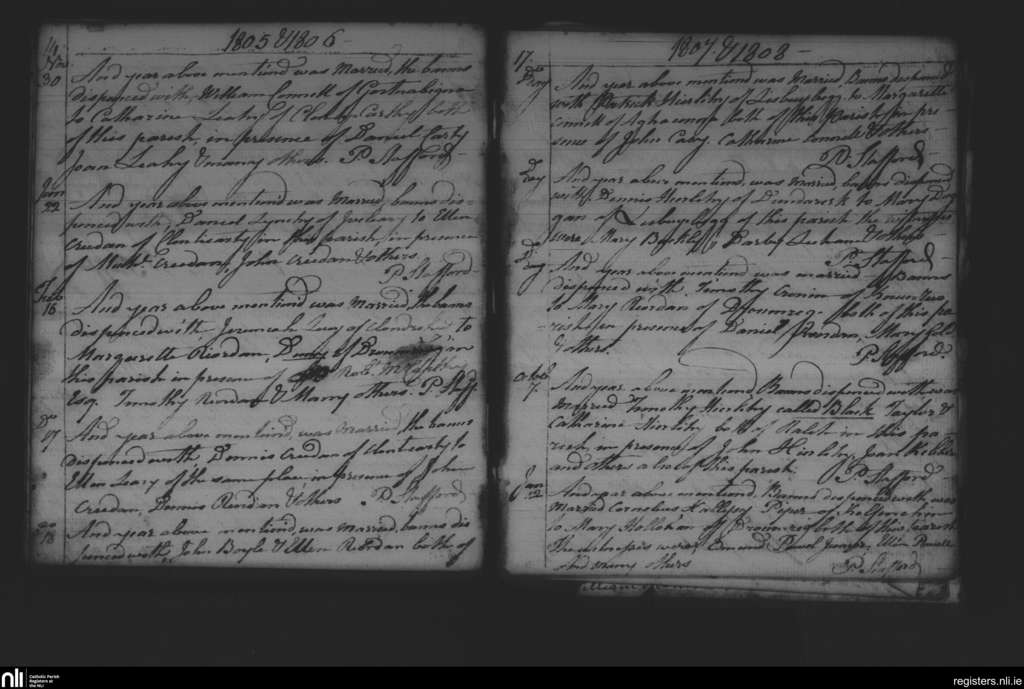 Kilnamartyra; County of Cork; Diocese of Cloyne. Marriages, Nov. 1805 to Jan. 1808