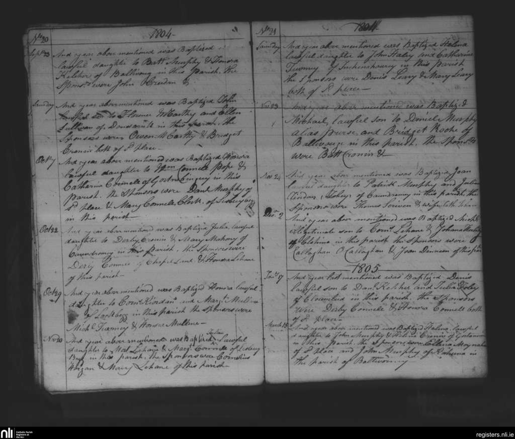 Kilnamartyra; County of Cork; Diocese of Cloyne. Baptisms, Sep. 1804 to Mar. 1805