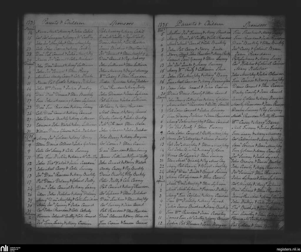 Kilnamartyra; County of Cork; Diocese of Cloyne. Baptisms, Nov. 1834 to Apr. 1835