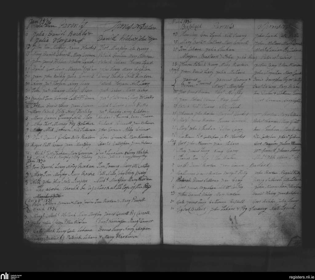 Kilnamartyra; County of Cork; Diocese of Cloyne. Baptisms, Dec. 1835 to May 1836