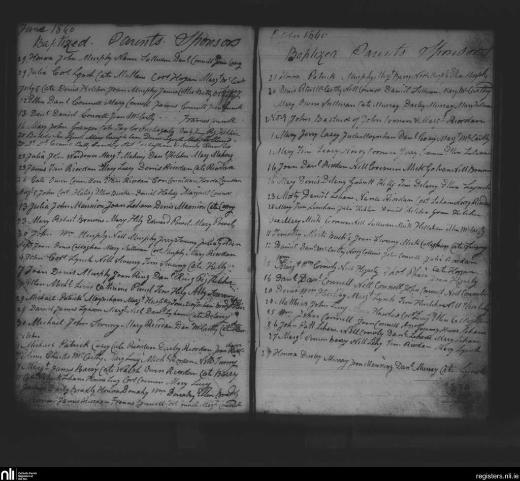 Kilnamartyra; County of Cork; Diocese of Cloyne. Baptisms, June 1840 to Dec. 1840
