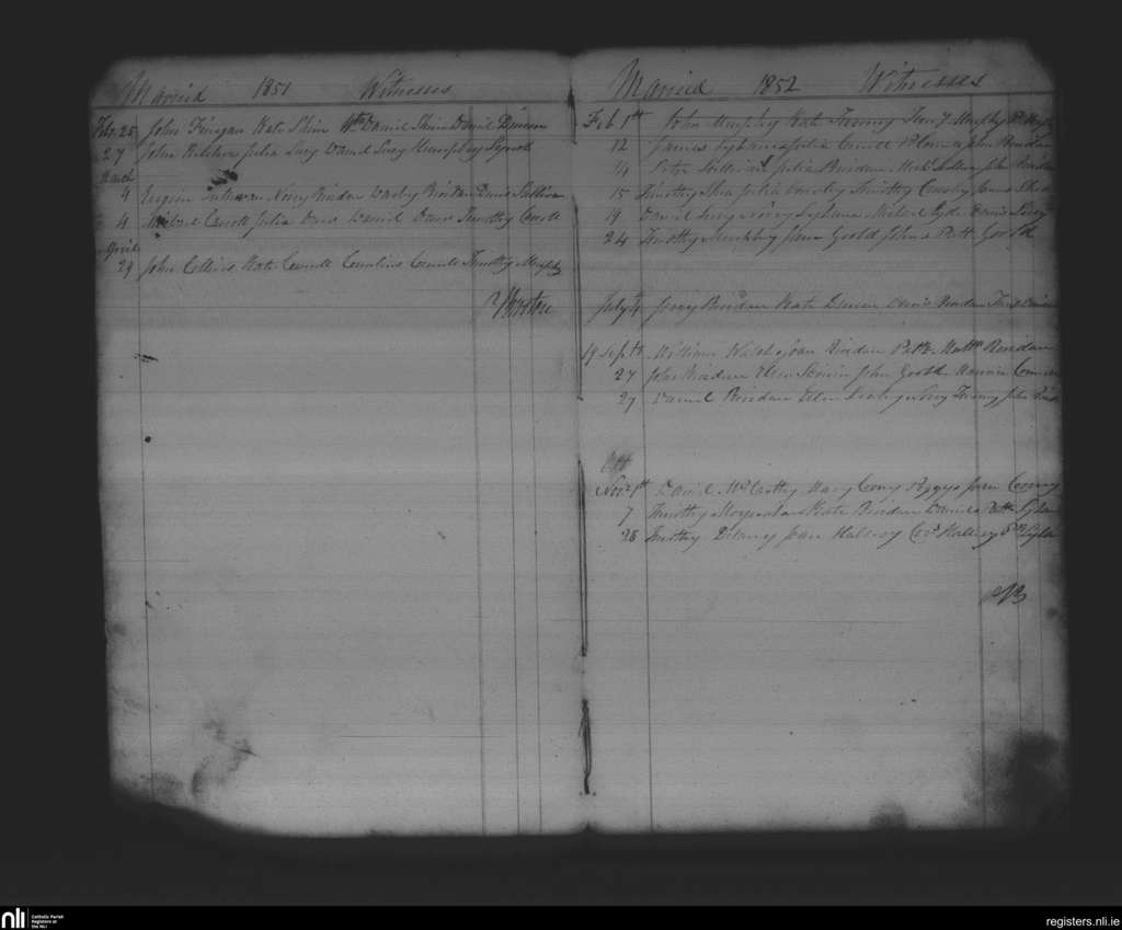 Kilnamartyra; County of Cork; Diocese of Cloyne. Marriages, Feb. 1851 to Nov. 1852