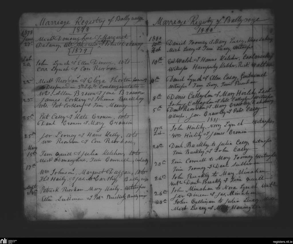 Kilnamartyra; County of Cork; Diocese of Cloyne. Marriages, June 1878 to Feb. 1881