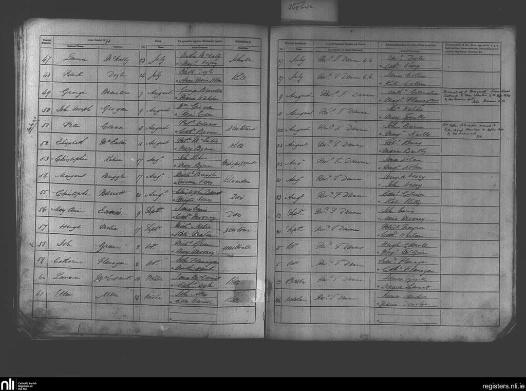 Kill; County of Kildare; Diocese of Kildare and Leighlin. Baptisms, July 1873 to Oct. 1873