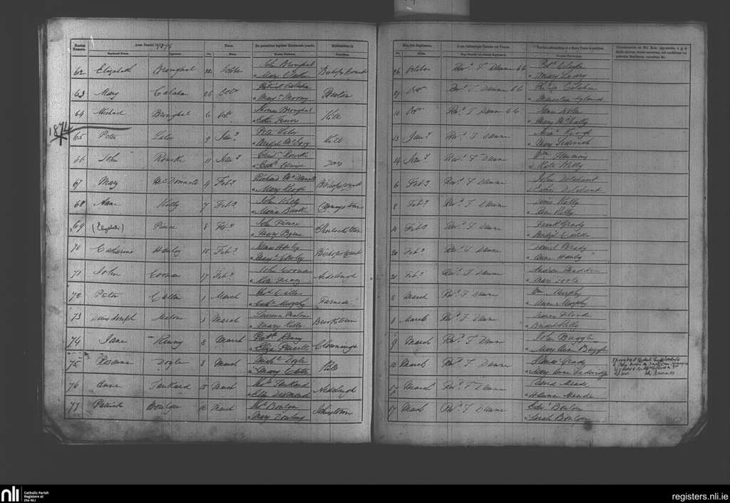 Kill; County of Kildare; Diocese of Kildare and Leighlin. Baptisms, Oct. 1873 to Mar. 1874
