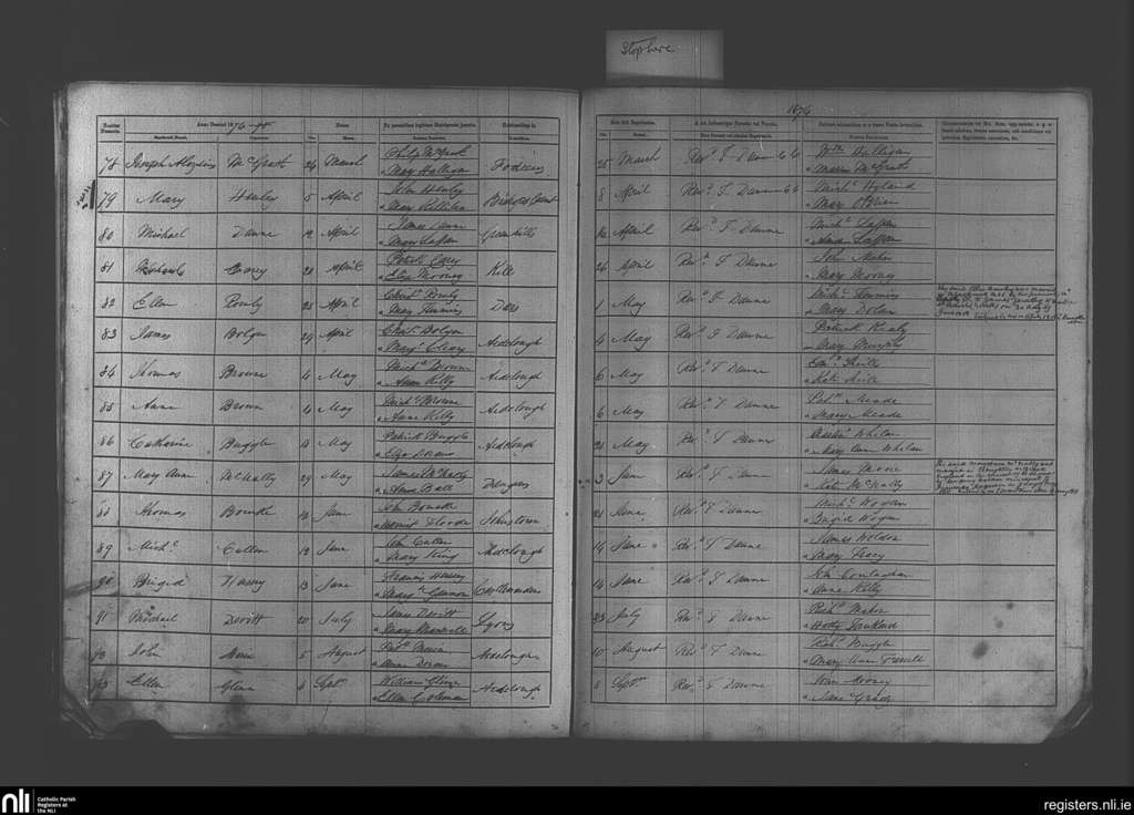 Kill; County of Kildare; Diocese of Kildare and Leighlin. Baptisms, Mar. 1874 to Sep. 1874