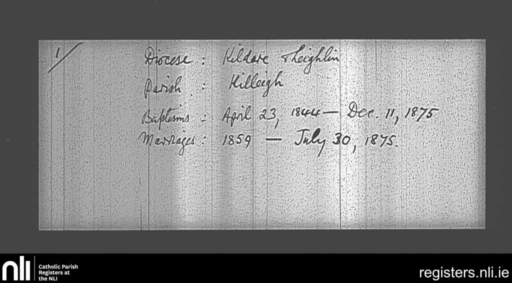 Killeigh; County of Offaly; Diocese of Kildare and Leighlin. Baptisms, Marriages