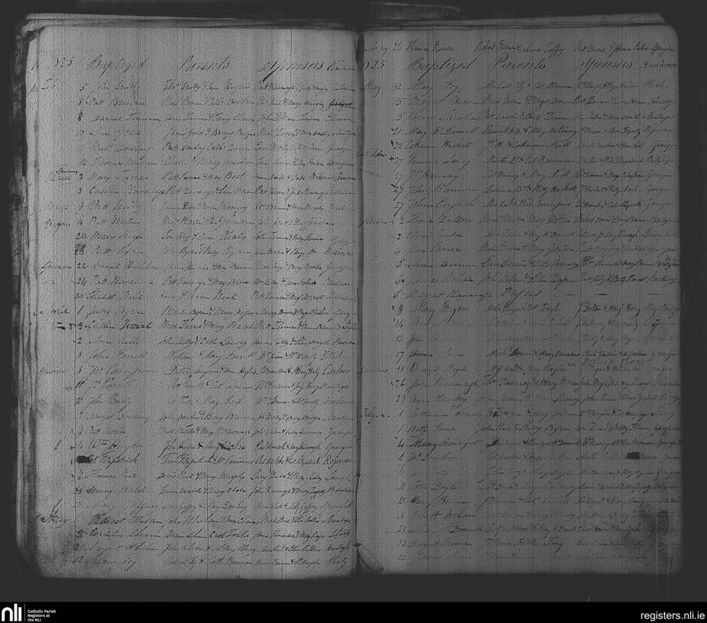Killeshin; County of Laois; Diocese of Kildare and Leighlin. Baptisms, Feb. 1825 to July 1825