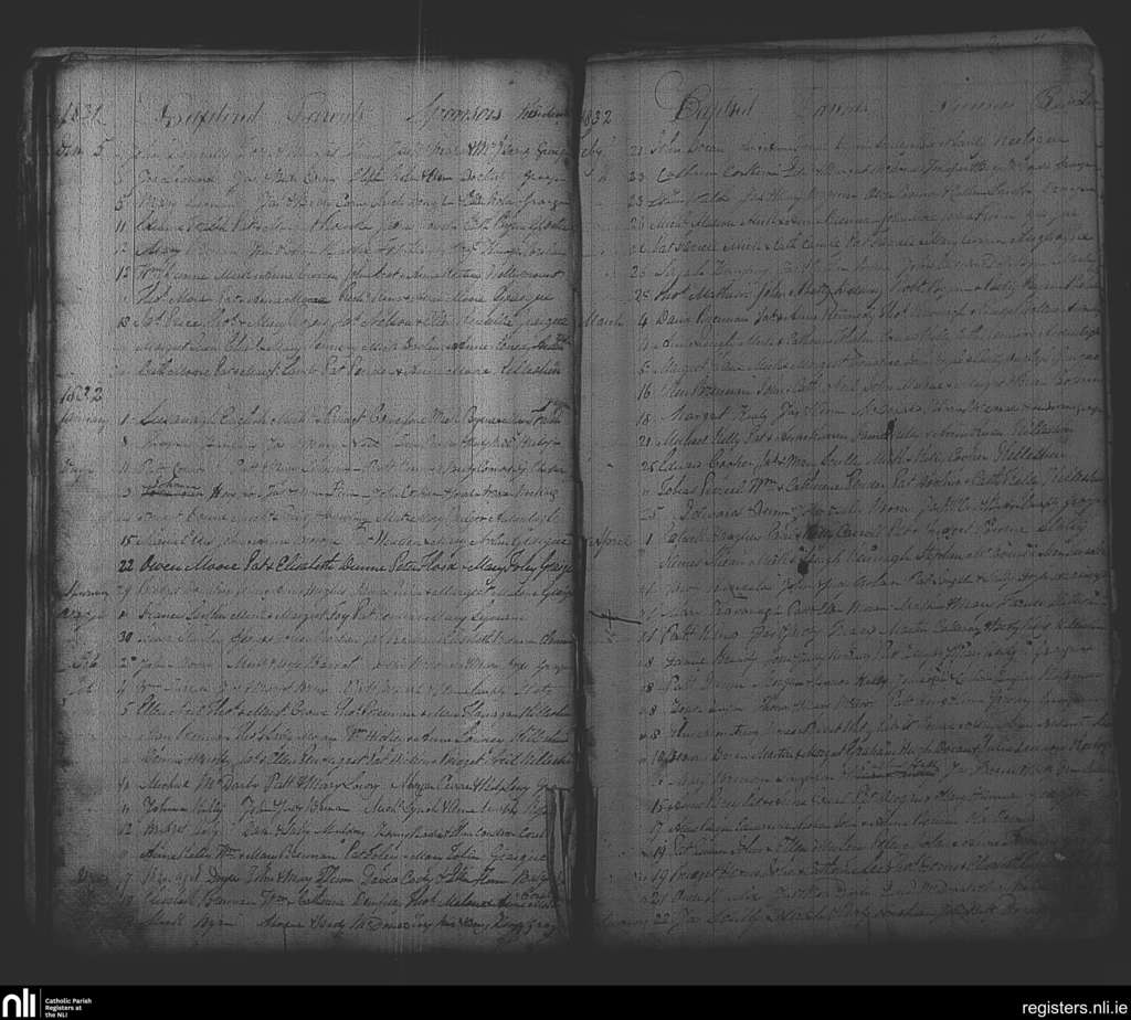 Killeshin; County of Laois; Diocese of Kildare and Leighlin. Baptisms, Dec. 1831 to Apr. 1832