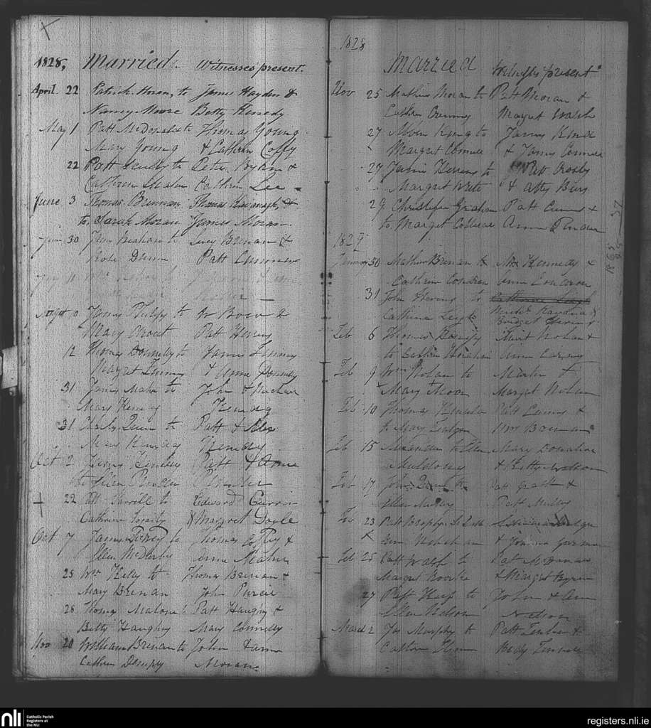 Killeshin; County of Laois; Diocese of Kildare and Leighlin. Marriages, Apr. 1828 to Mar. 1829