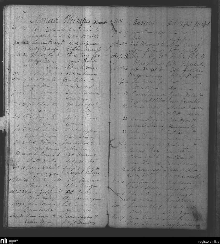 Killeshin; County of Laois; Diocese of Kildare and Leighlin. Marriages, Oct. 1830 to Nov. 1831