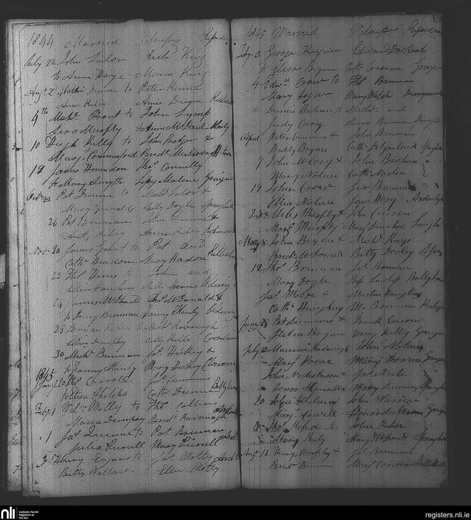 Killeshin; County of Laois; Diocese of Kildare and Leighlin. Marriages, July 1844 to Aug. 1845