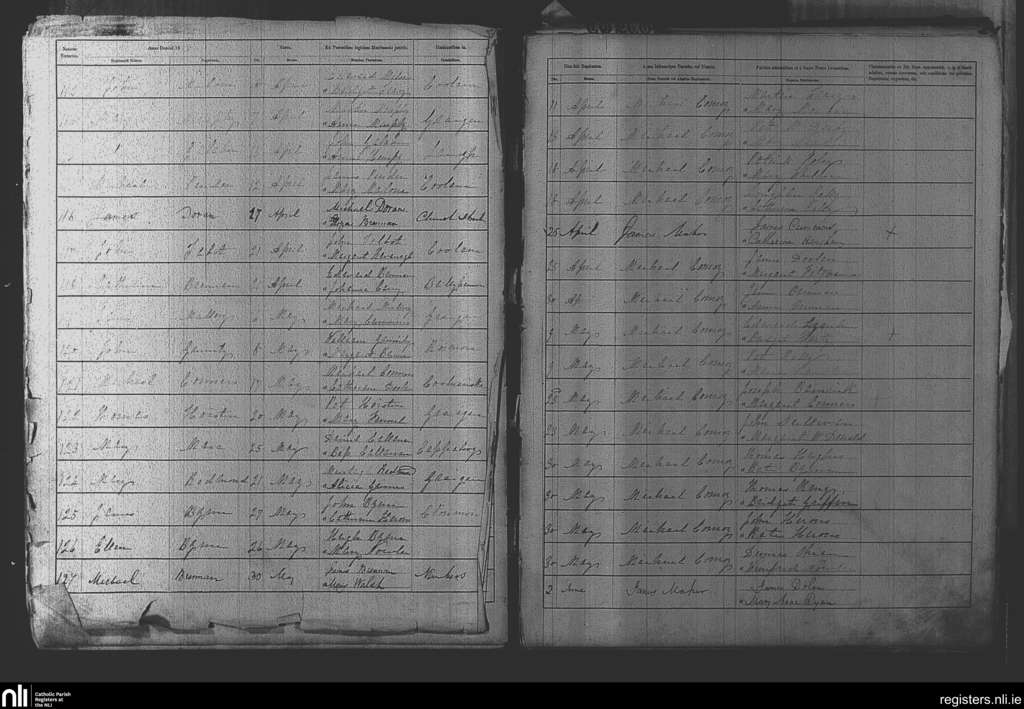 Killeshin; County of Laois; Diocese of Kildare and Leighlin. Baptisms, Apr. 1858 to June 1858