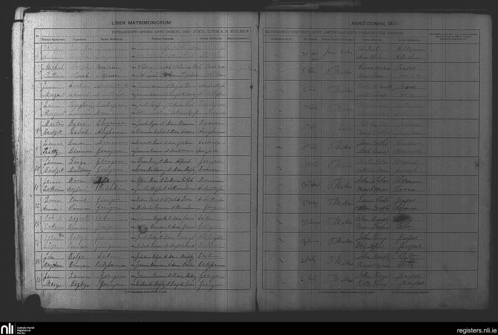 Killeshin; County of Laois; Diocese of Kildare and Leighlin. Marriages, Nov. 1860 to July 1861