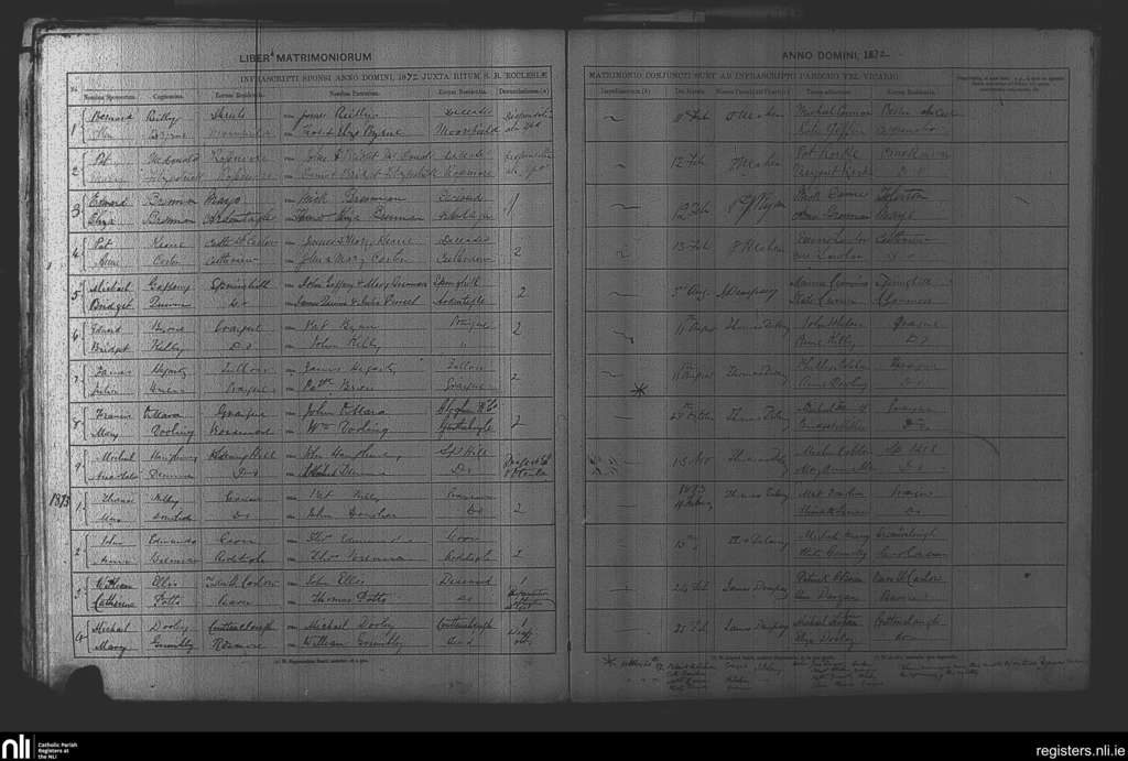 Killeshin; County of Laois; Diocese of Kildare and Leighlin. Marriages, Feb. 1872 to Feb. 1873