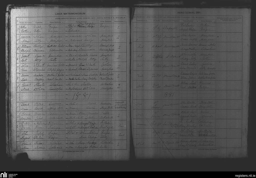 Killeshin; County of Laois; Diocese of Kildare and Leighlin. Marriages, May 1880 to June 1881