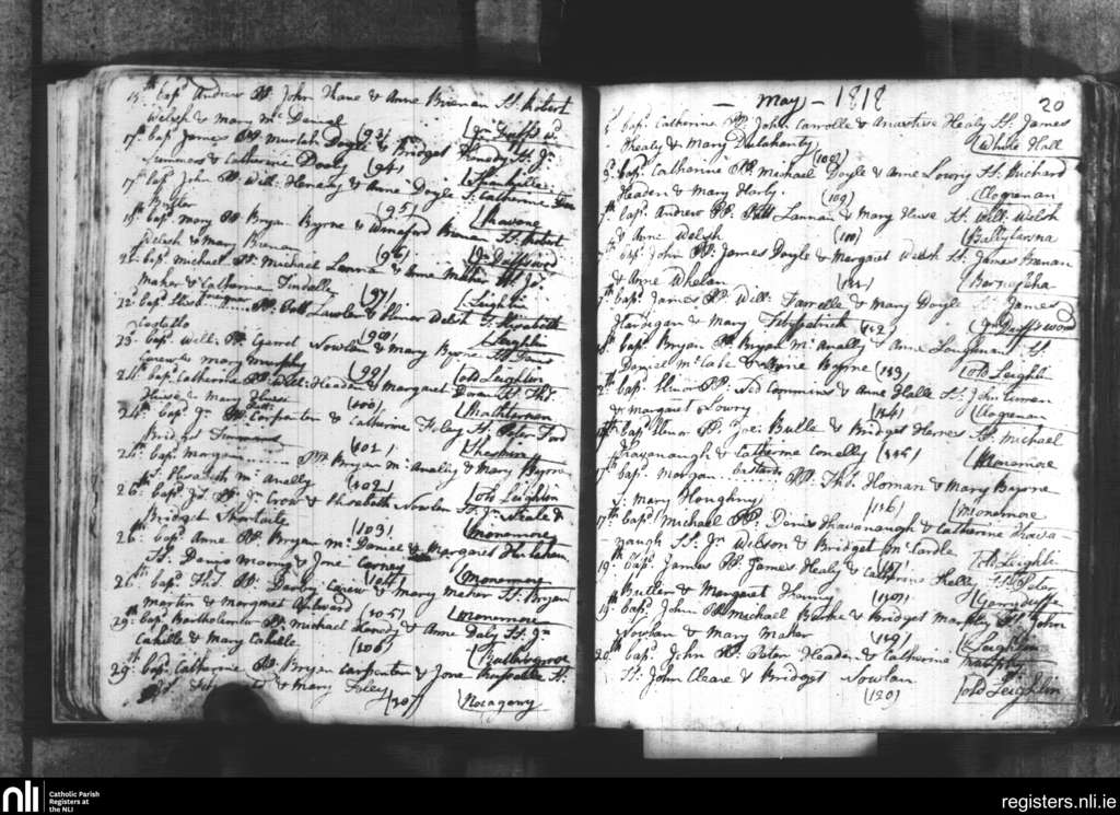 Leighlinbridge; County of Carlow, Laois; Diocese of Kildare and Leighlin. Baptisms, Apr. 1818 to May 1818
