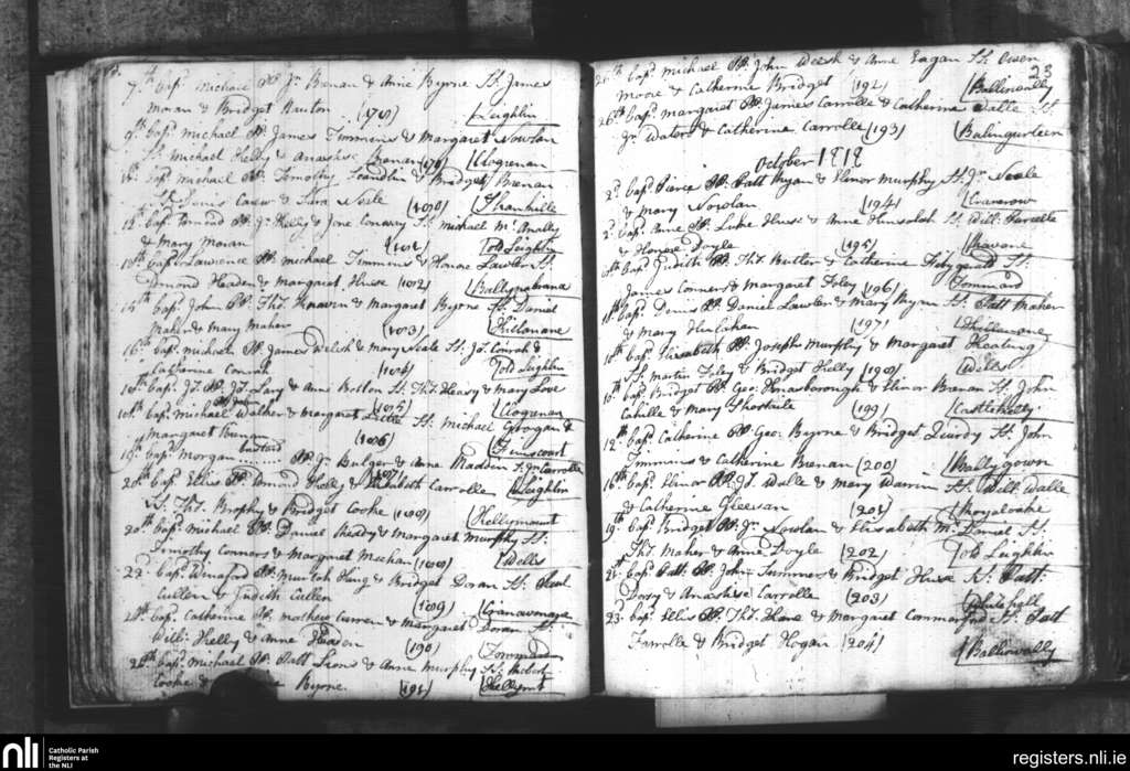 Leighlinbridge; County of Carlow, Laois; Diocese of Kildare and Leighlin. Baptisms, Sep. 1818 to Oct. 1818
