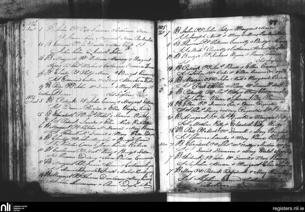Leighlinbridge; County of Carlow, Laois; Diocese of Kildare and Leighlin. Baptisms, Dec. 1824 to Mar. 1825