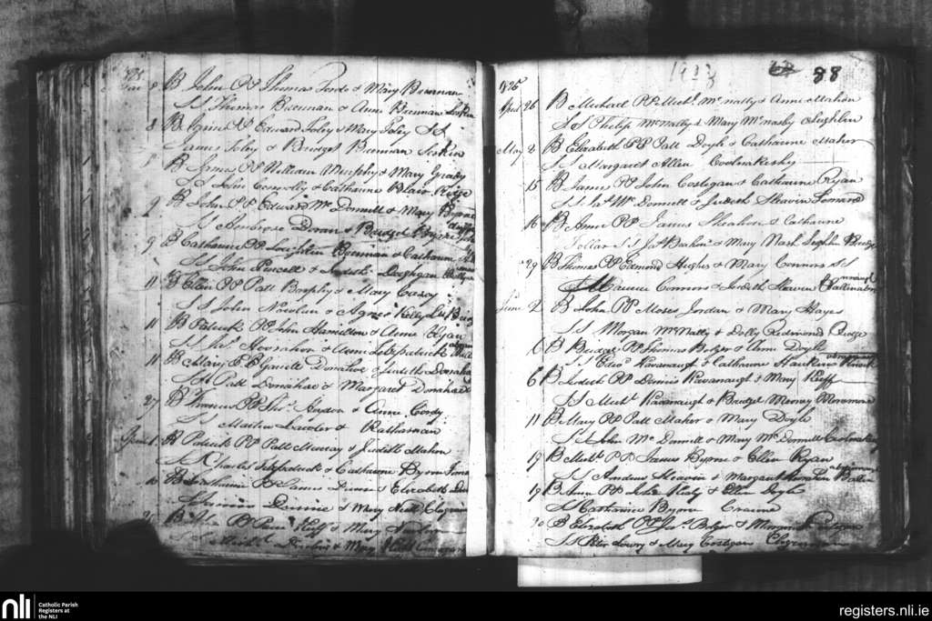 Leighlinbridge; County of Carlow, Laois; Diocese of Kildare and Leighlin. Baptisms, Mar. 1825 to June 1825