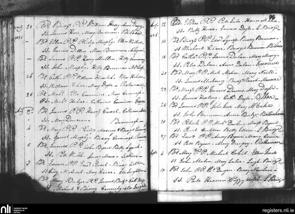 Leighlinbridge; County of Carlow, Laois; Diocese of Kildare and Leighlin. Baptisms, July 1826 to Sep. 1826