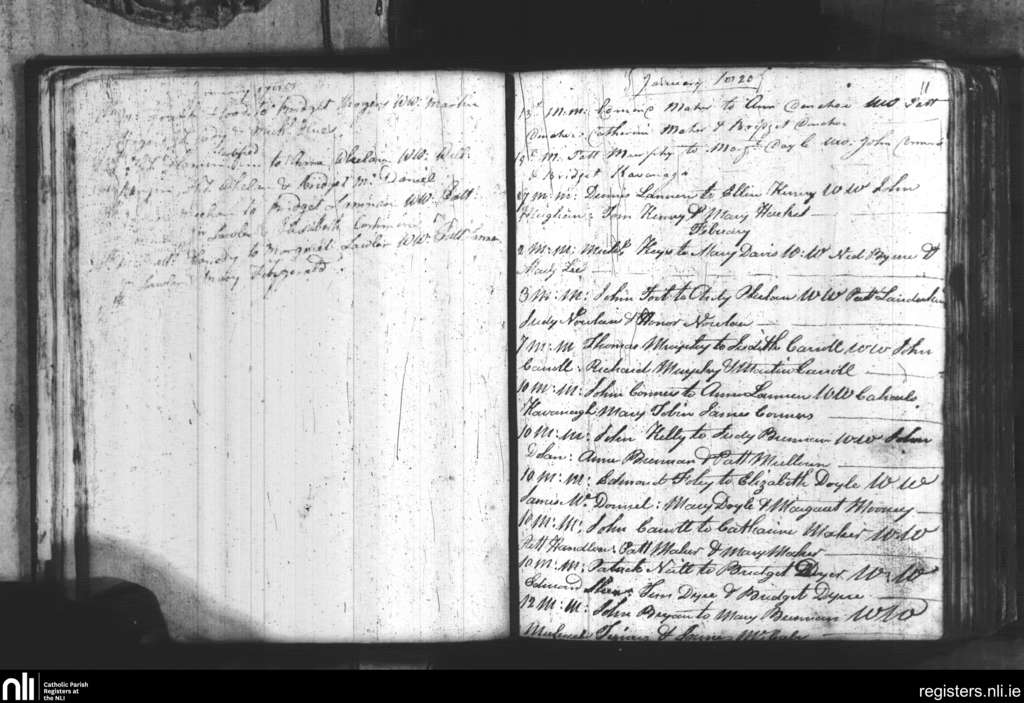 Leighlinbridge; County of Carlow, Laois; Diocese of Kildare and Leighlin. Baptisms, Jan. 1788 to Feb. 1820