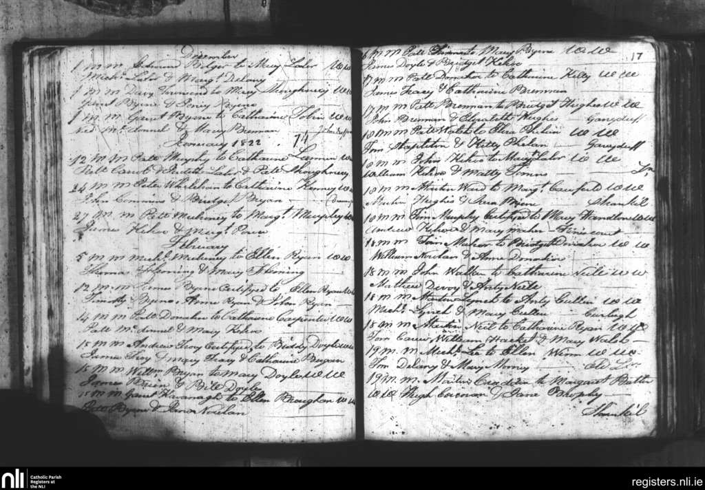 Leighlinbridge; County of Carlow, Laois; Diocese of Kildare and Leighlin. Baptisms, Dec. 1821 to Feb. 1822
