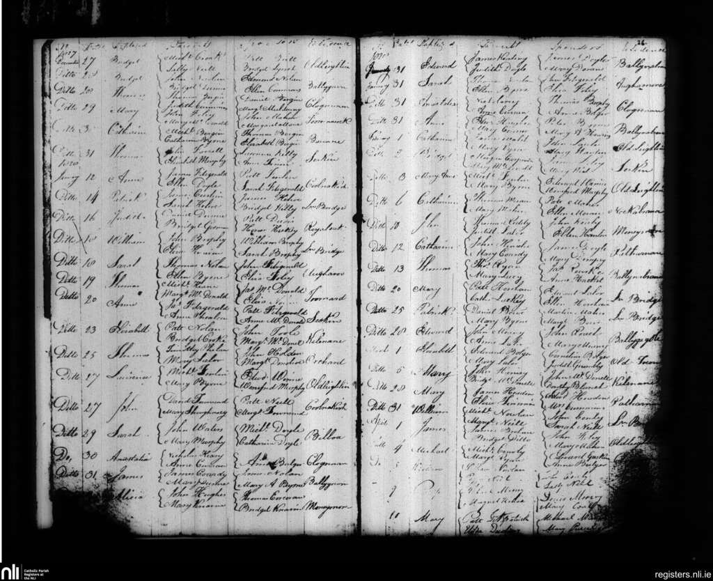 Leighlinbridge; County of Carlow, Laois; Diocese of Kildare and Leighlin. Baptisms, Dec. 1827 to Apr. 1828
