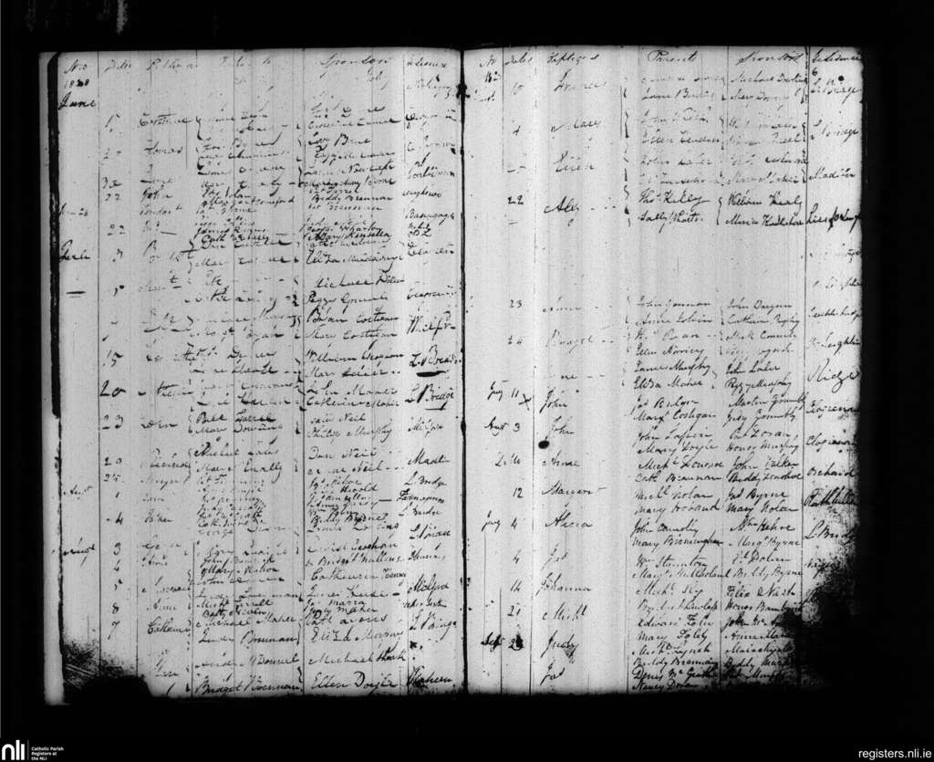 Leighlinbridge; County of Carlow, Laois; Diocese of Kildare and Leighlin. Baptisms, June 1828 to Sep. 1828
