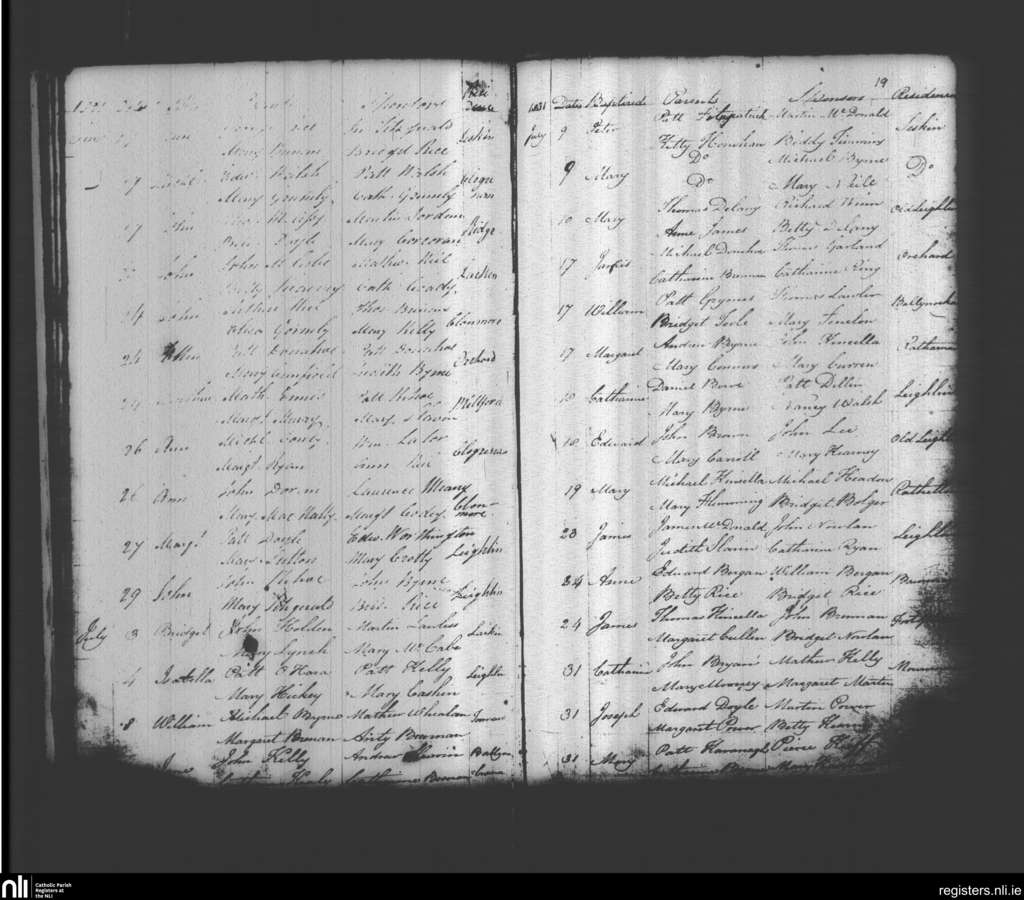 Leighlinbridge; County of Carlow, Laois; Diocese of Kildare and Leighlin. Baptisms, June 1831 to July 1831