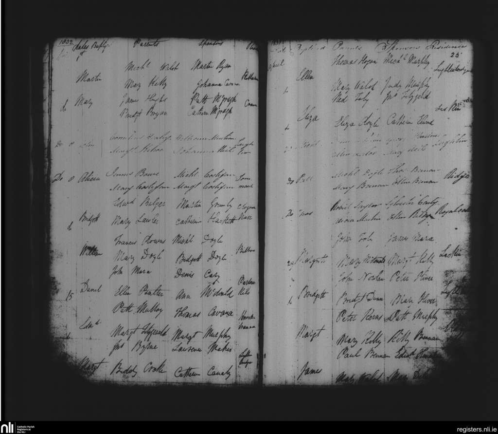 Leighlinbridge; County of Carlow, Laois; Diocese of Kildare and Leighlin. Baptisms, Apr. 1832