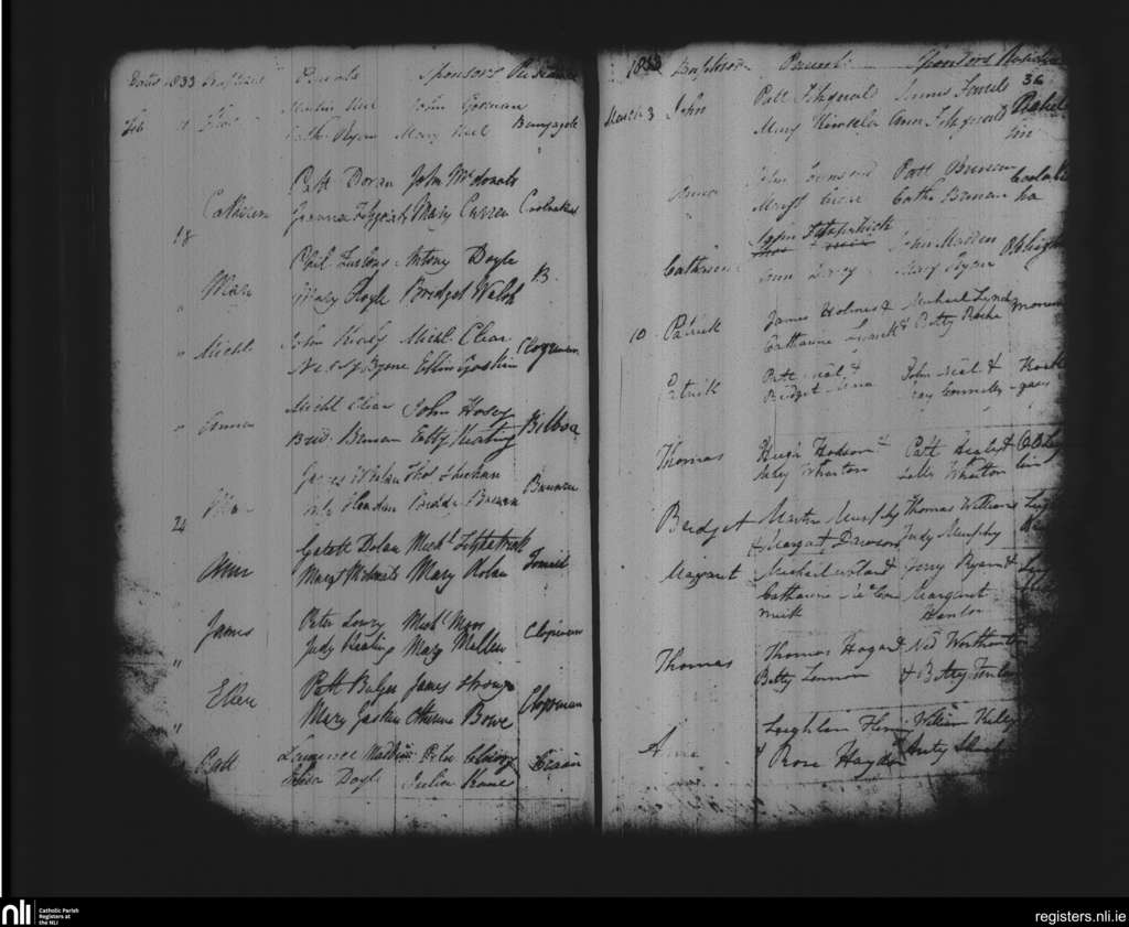 Leighlinbridge; County of Carlow, Laois; Diocese of Kildare and Leighlin. Baptisms, Feb. 1833 to Mar. 1833