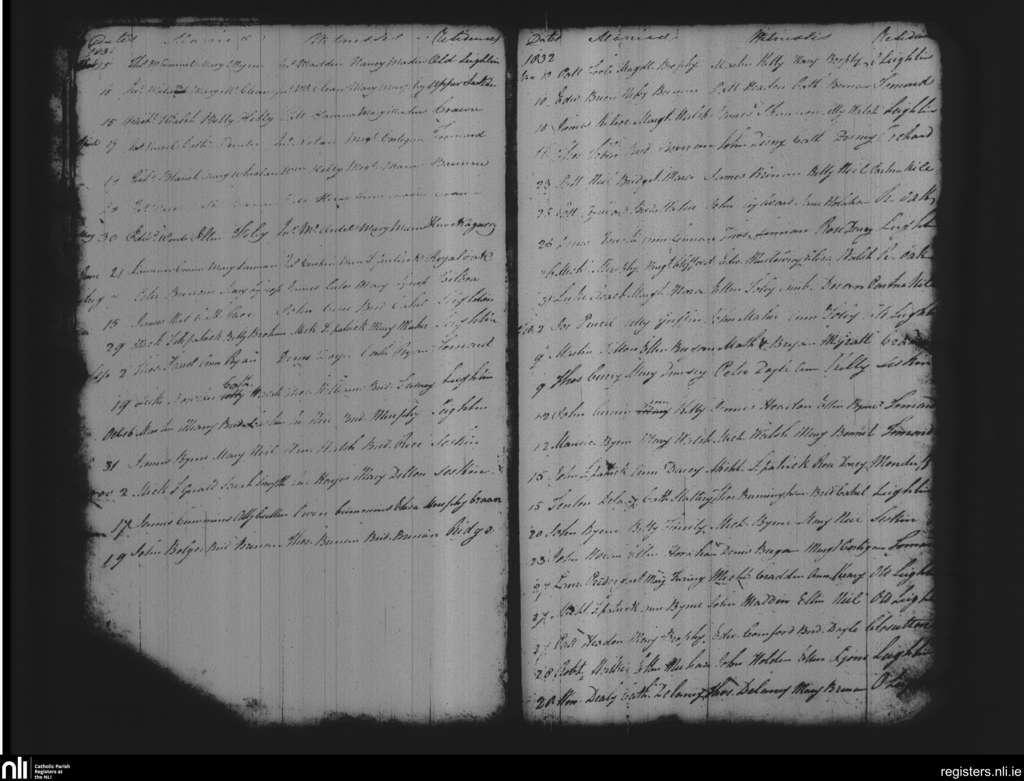 Leighlinbridge; County of Carlow, Laois; Diocese of Kildare and Leighlin. Marriages, Feb. 1831 to Feb. 1832